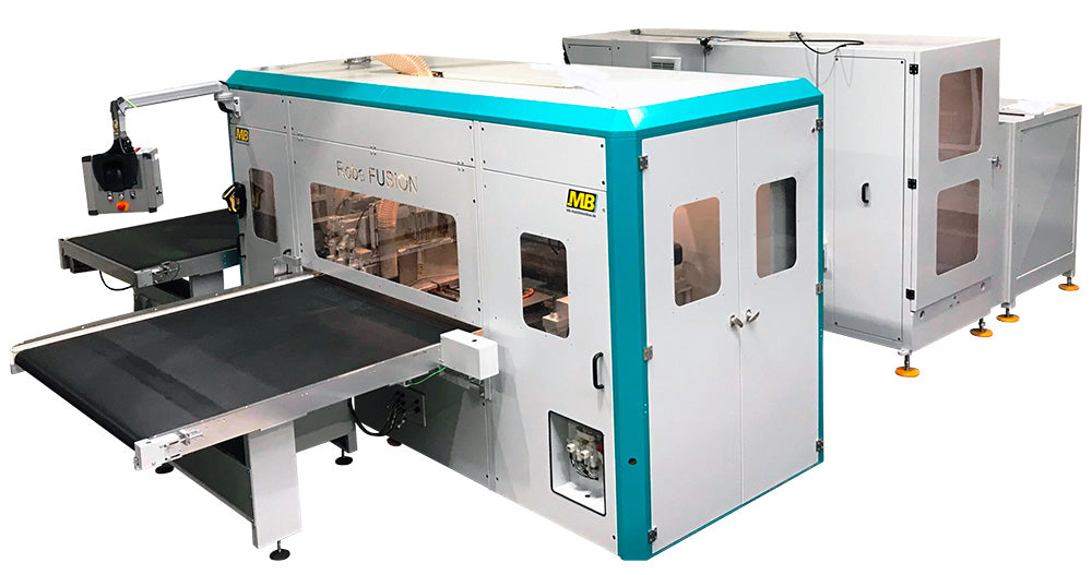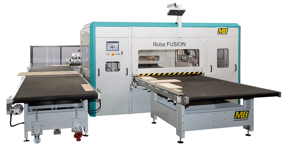 So it takes a smart solution to enter furniture fronts that come with completely variable outer dimensions to a double end tenoner to perform high-throughput edge processing. The ROBA Fusion from MB Maschinenbau tackles the problem with a completely new concept. In order to make the required fast width adjustment, the machine has been designed to be particularly short and compact. The faster the workpieces leave the machine, the earlier the new adjustment. Further the needed aggregate position must be determined fully automatically in through feed.